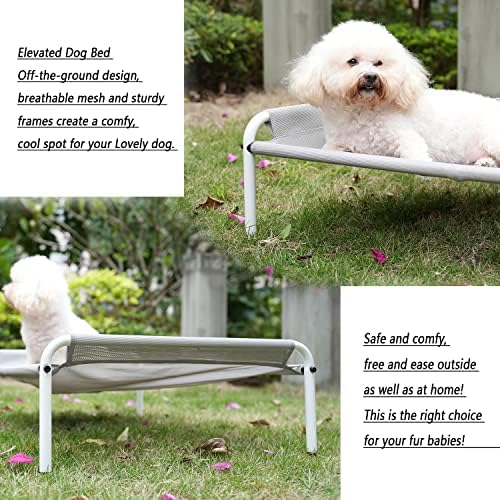 Elevated Small&Medium Outdoor Dog Bed - Cooling Portable Breathable Pet Cot Washable Pet Bed Sturdy Durable Pet Hammock Bed with Non-Slip Base Easy to Clean Suitable for Indoor or Outdoor Use-Grey